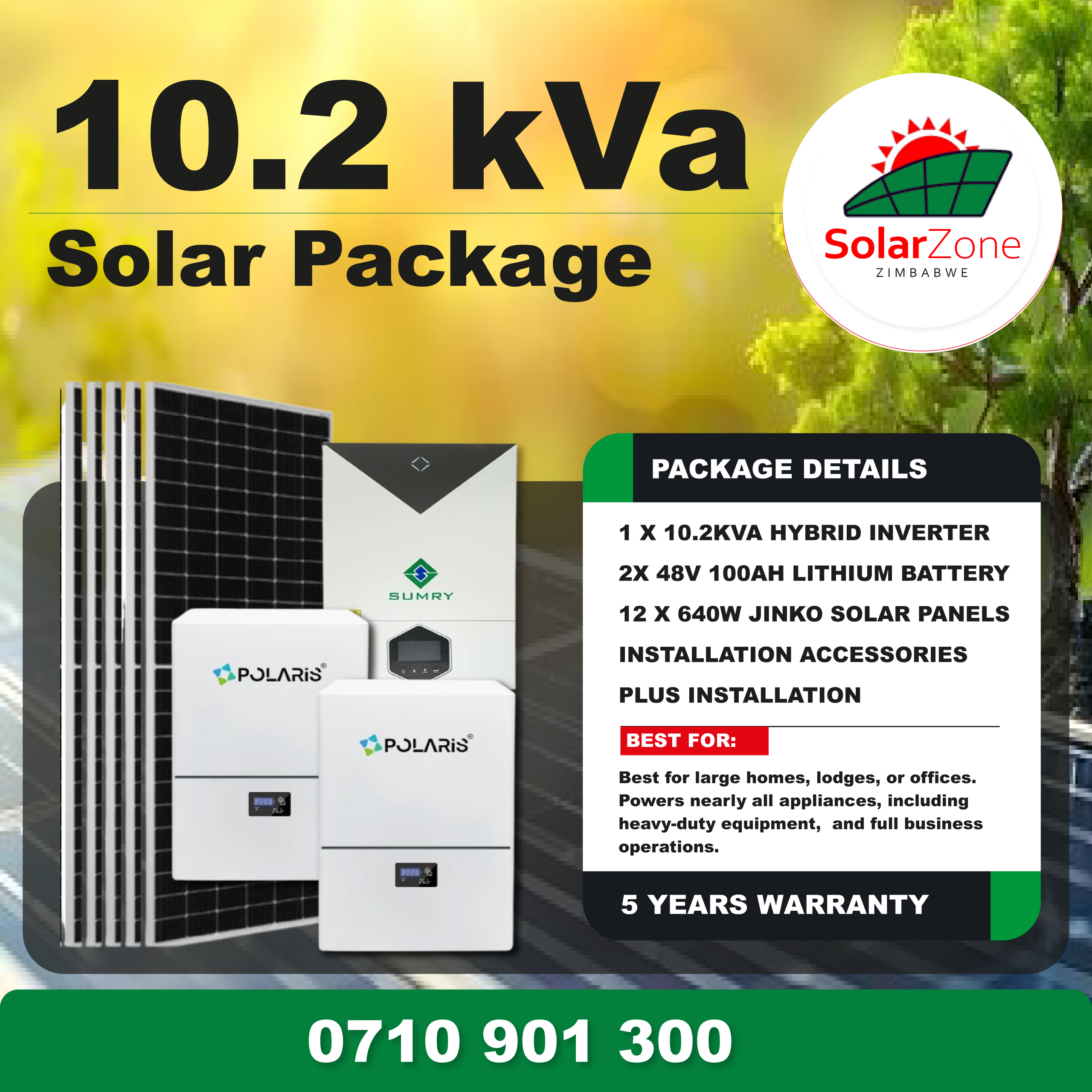 Includes: Complete solar systems with professional installation- Installation is available anywhere in Zimbabwe